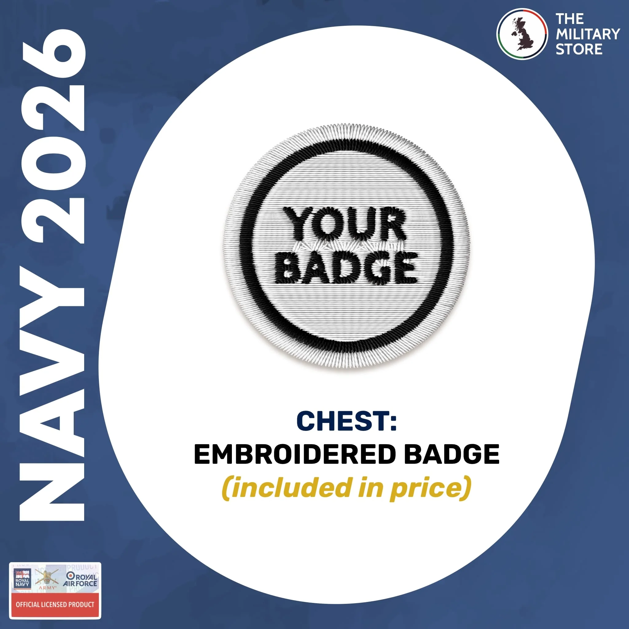 - Ship badge of your choice embroidered on left breast.