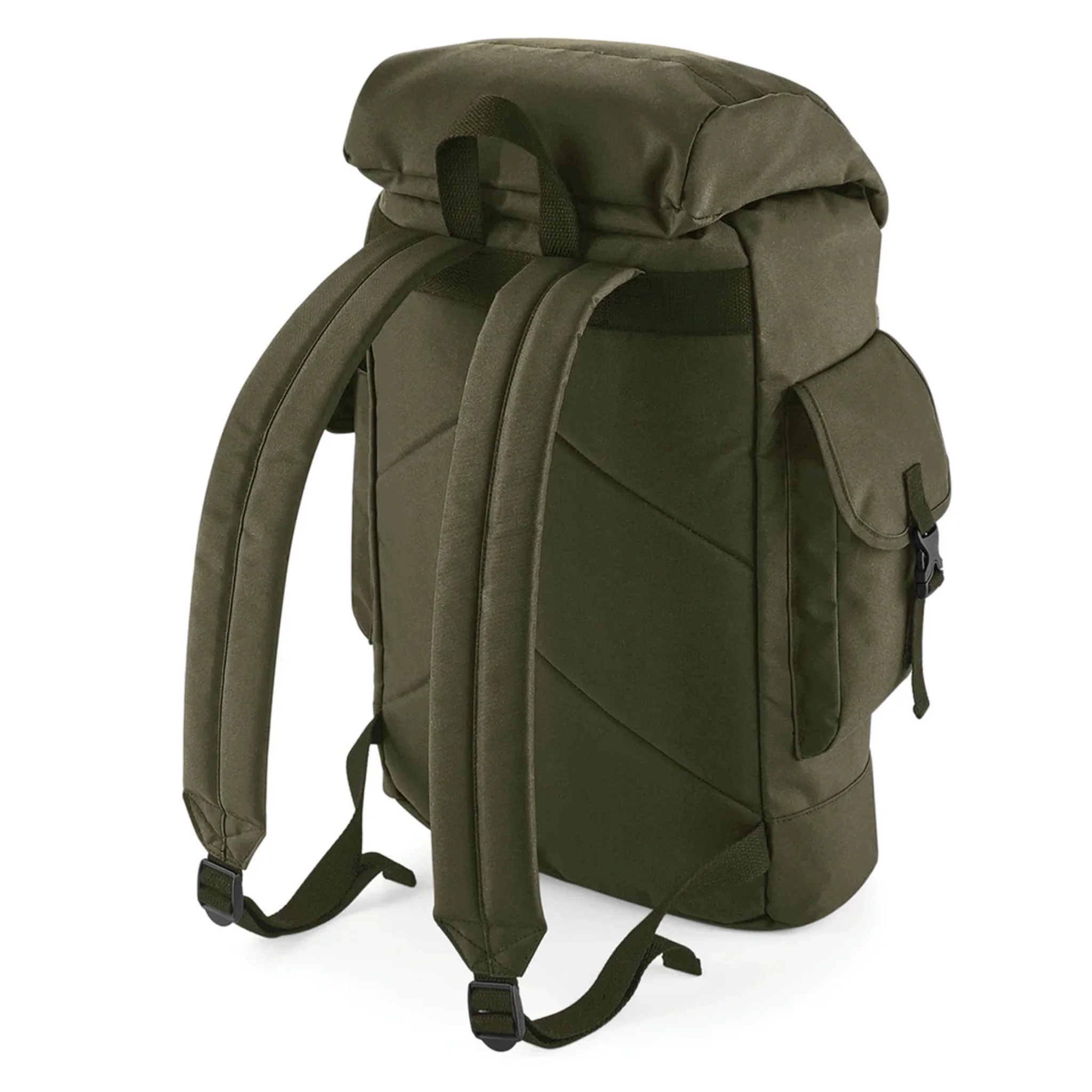 Heritage styling. PU accents. Drawcord closure. Zippered flap pocket. Side pouch pockets. Internal slip pocket. Padded back panel. Padded adjustable shoulder straps. Grab handle.